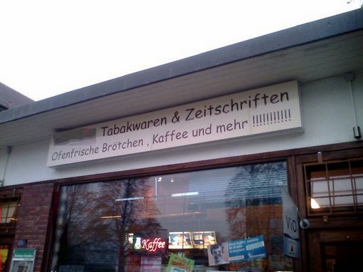 Werde mir bei Gelegenheit mal ein Brötchen!!, ein Kaffee!!! und eine Zeitung!!!! dort  zulegen. Die verbleibenden Exklamationen dürften noch für Kaugummi reichen.
